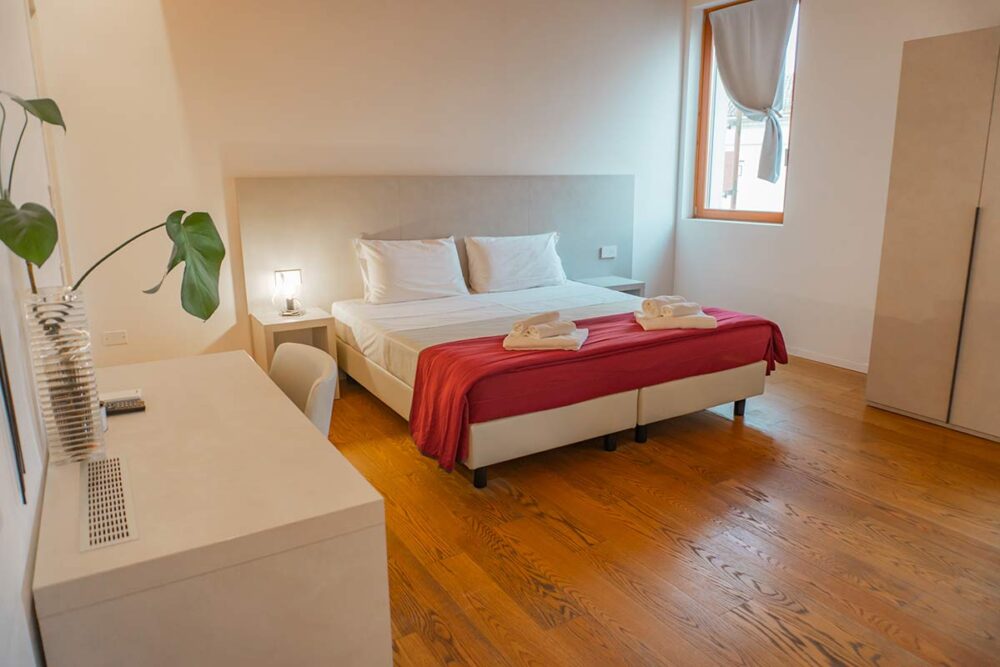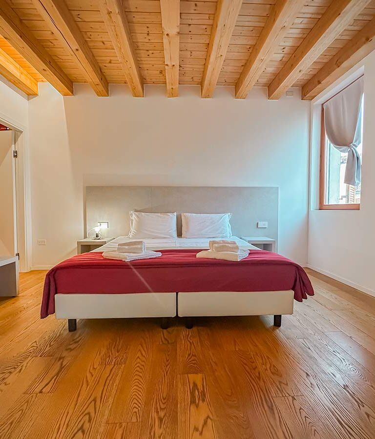 La camera matrimoniale della Locanda del Delta è un rifugio intimo e confortevole, perfetto per coppie in cerca di relax e tranquillità. Arredata con eleganza e attenzione ai dettagli, la stanza presenta un ampio letto matrimoniale.